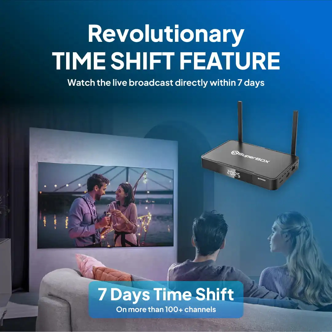 The SuperBox S7 Pro sets a new standard in TV box performance with its upgraded 7-day Time-Shift feature. Compared to the previous S6 model, which supported rewind for up to 8 hours, the S7 Pro lets you instantly access and replay programs from the past seven days. No downloads, no complicated setup — just effortless catch-up viewing anytime you want.