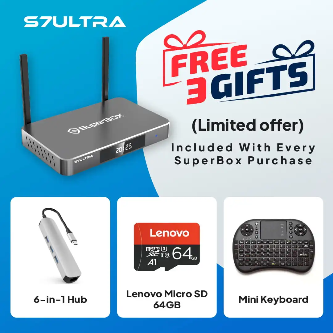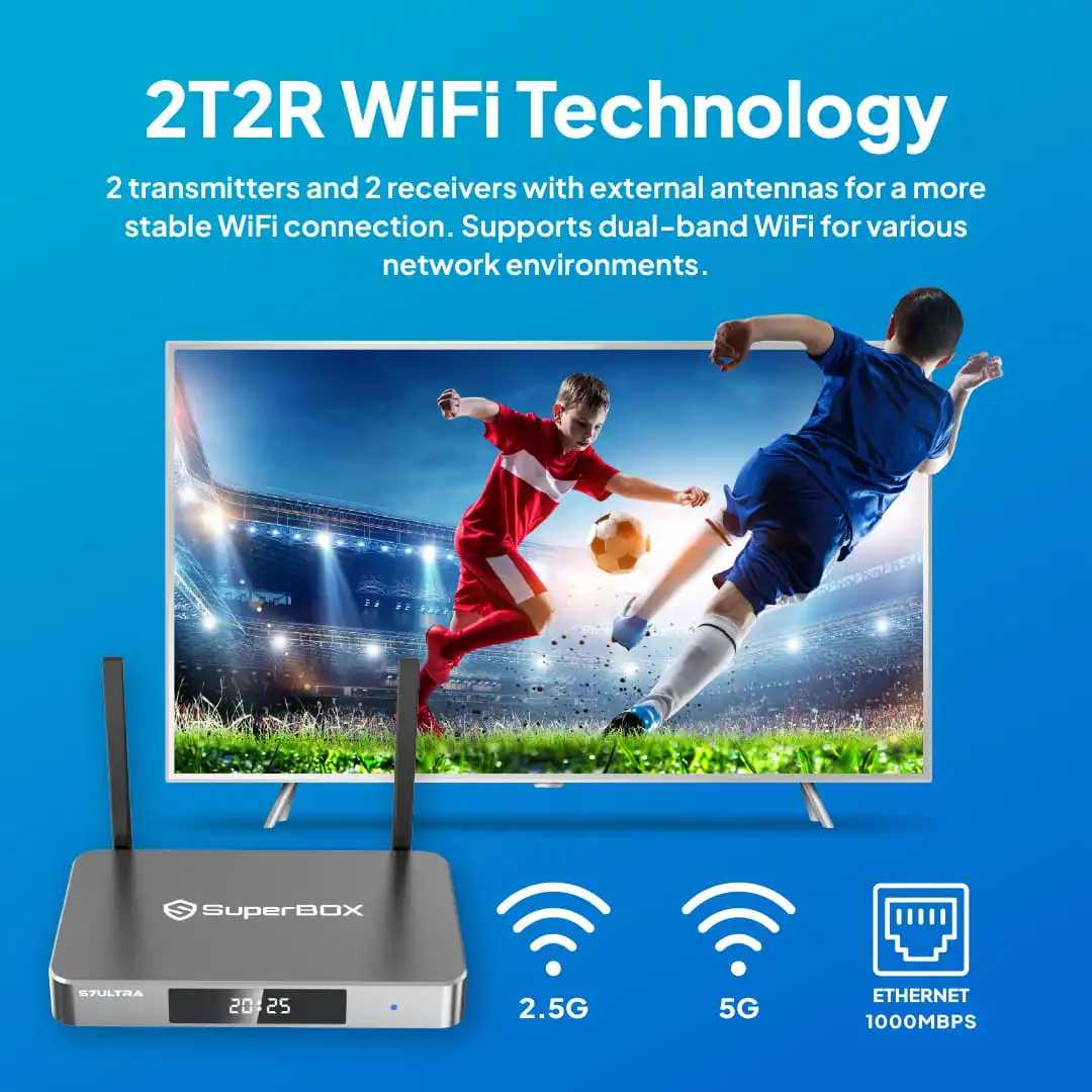 SuperBox S7 Ultra (2026 Latest Version) delivers an upgraded home entertainment experience with faster performance, improved stability, and a smooth, user-friendly interface. As the newest model released in 2026, it offers rich live TV channels and on-demand content in one powerful device, with a simple plug-and-play setup and no monthly subscription required. Designed for reliable, everyday viewing, it’s an ideal choice for families who want convenient, cost-effective entertainment.